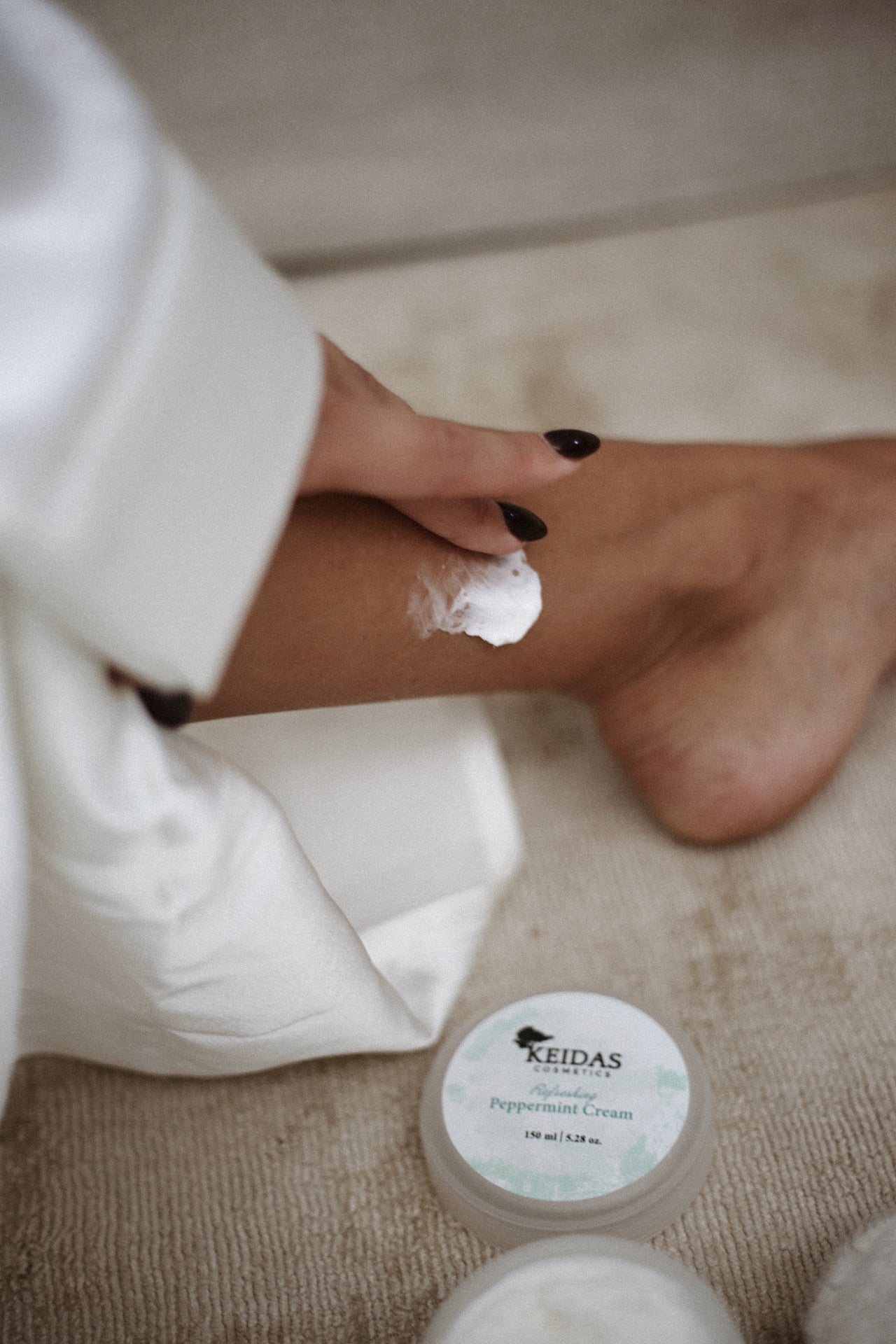 Indulge your skin with Refreshing Peppermint Cream. A fast-absorbing body cream that leaves your tired dry legs soft, smooth and naturally revitalized. Enriched with natural plant oils and fresh peppermint essential oil with a luxurious creamy texture for spa-like experience. Contains natural ingredients rich in omega-3, -6 and -9 fatty acids.